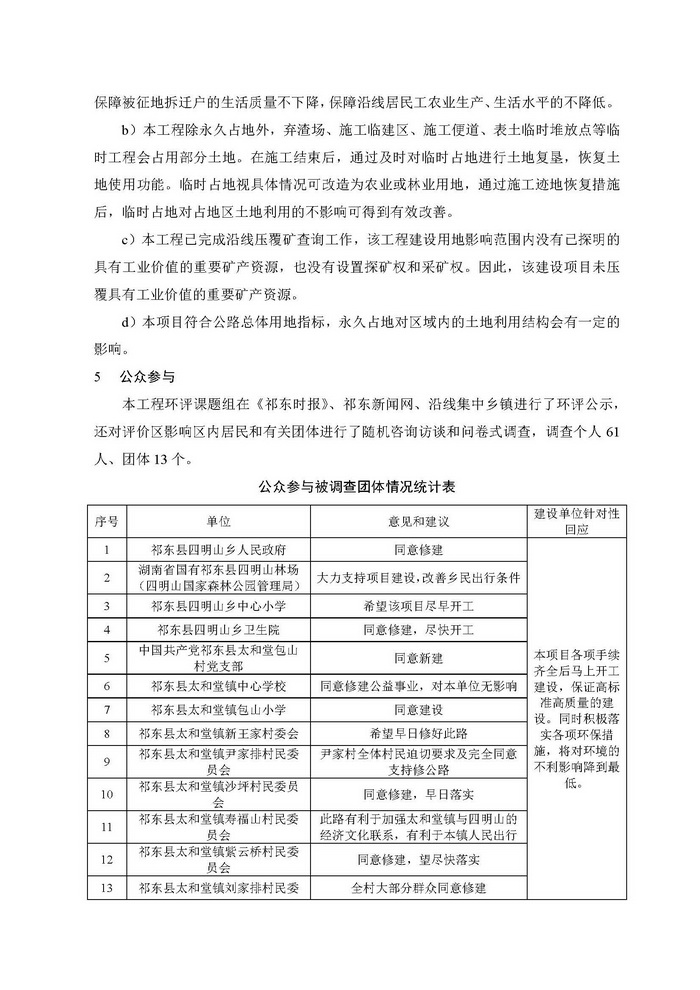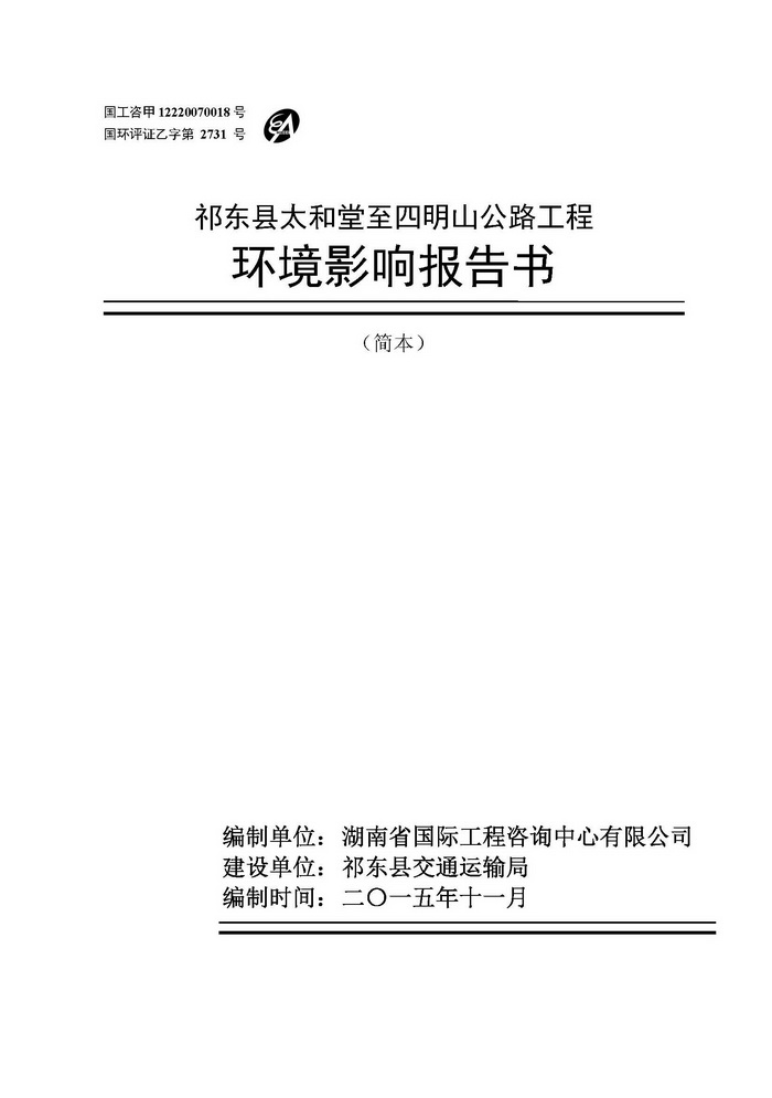 祁東縣太和堂至四明山公路工程環(huán)境影響報告書