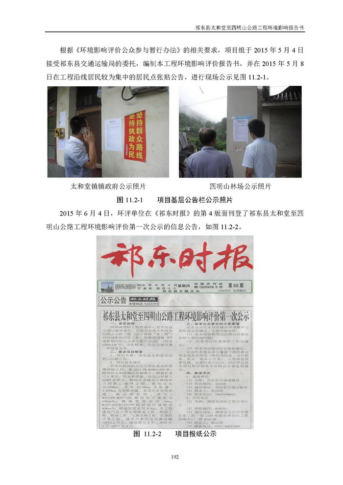 《祁東縣太和堂至四明山公路工程環(huán)評(píng)報(bào)告書》全本公示