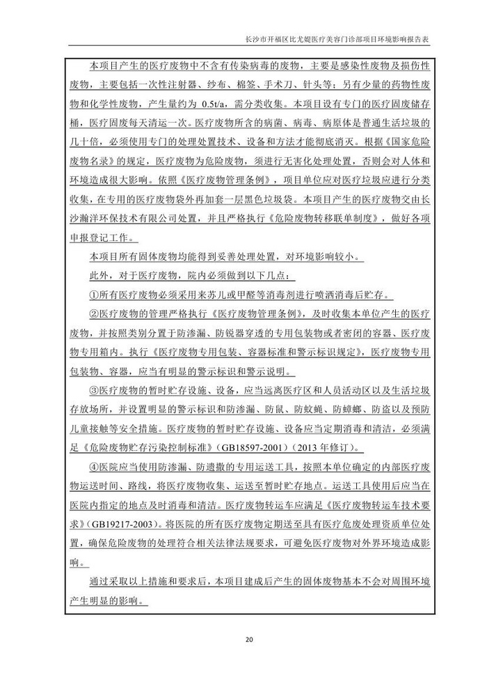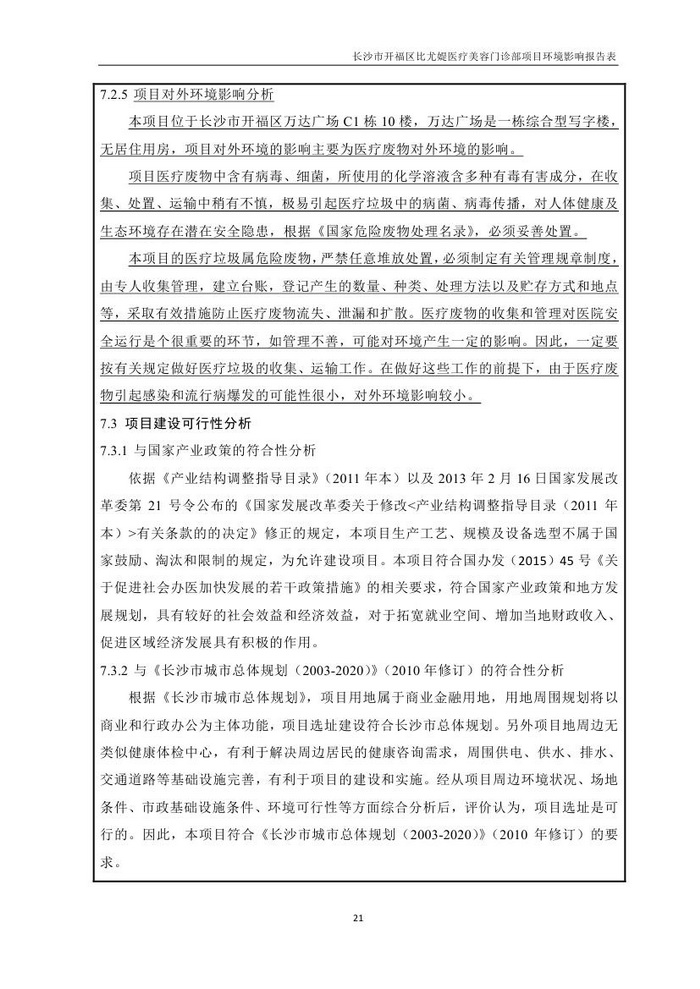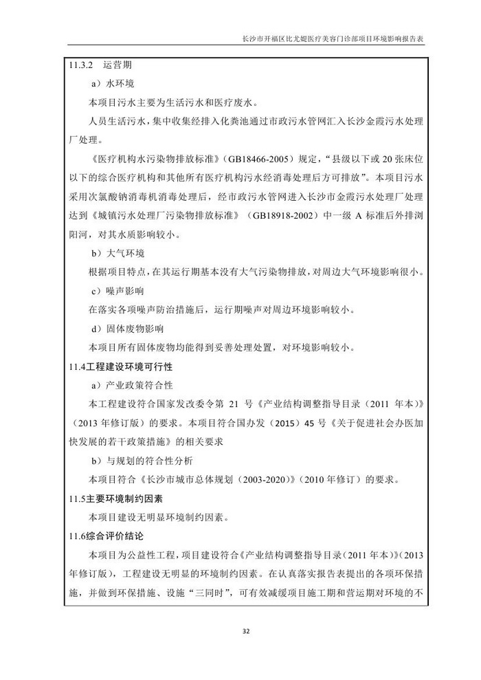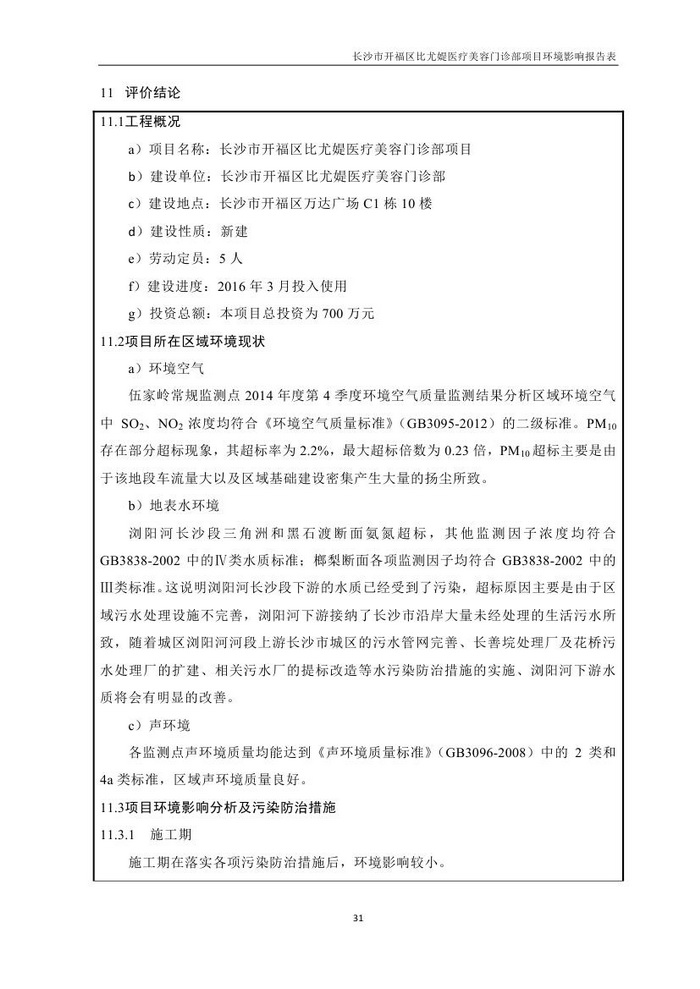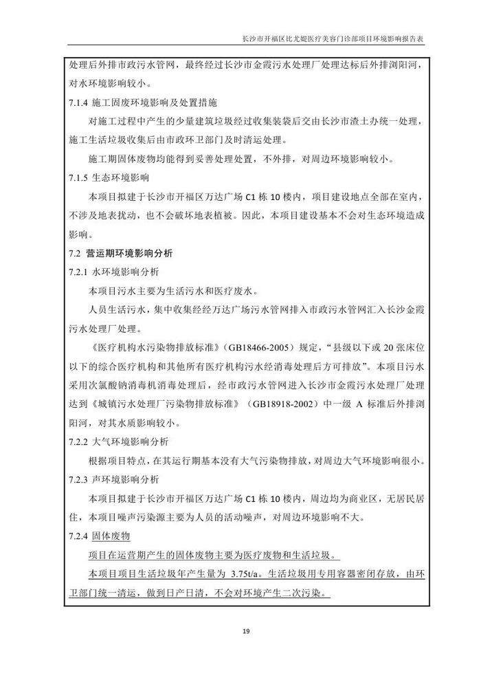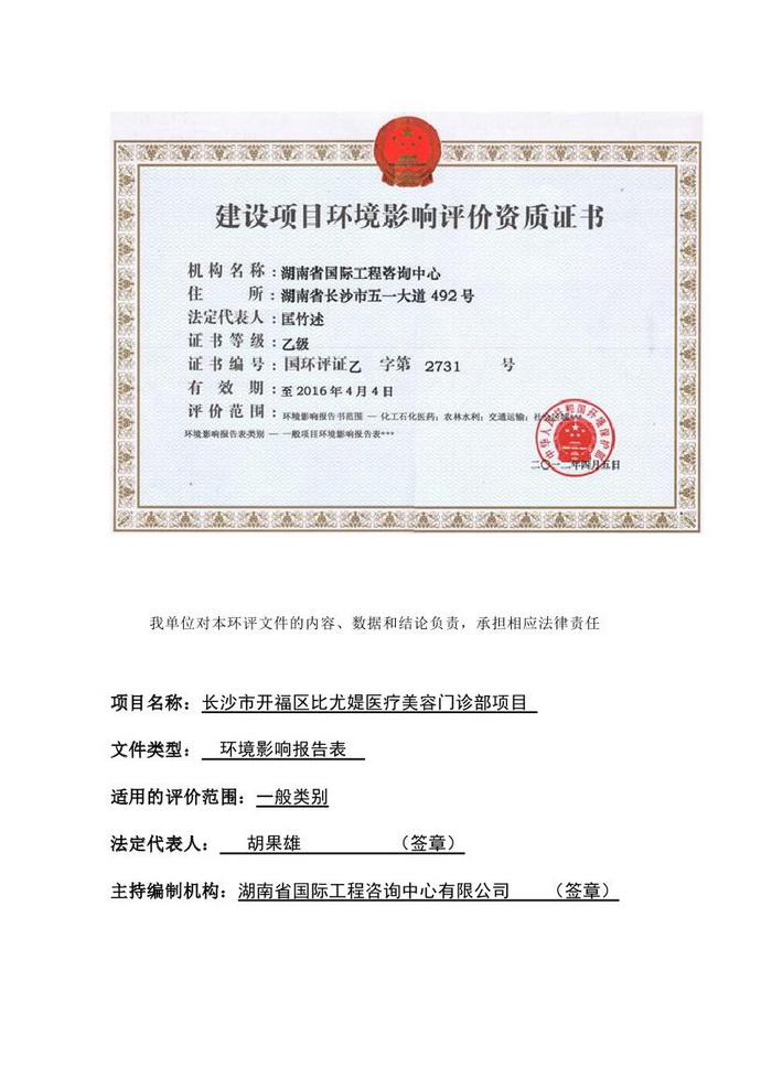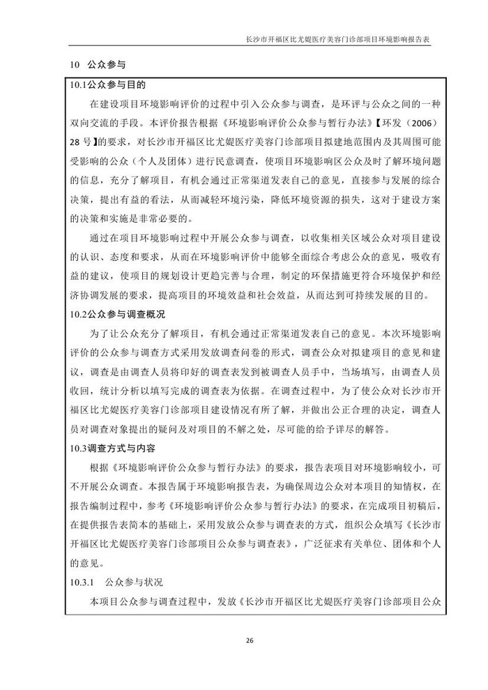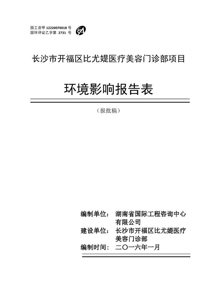 長沙市開福區(qū)比尤媞醫(yī)療美容門診部項目環(huán)評報告表(公示)