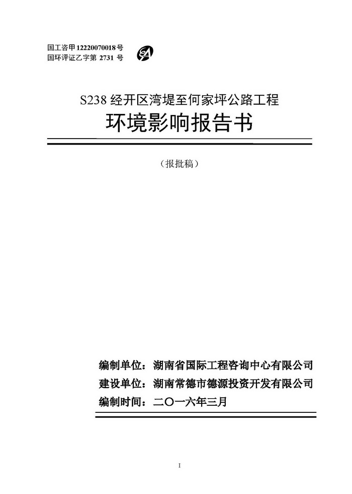 S238經(jīng)開(kāi)區(qū)灣堤至何家坪公路工程(報(bào)批稿公示)