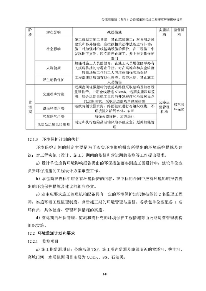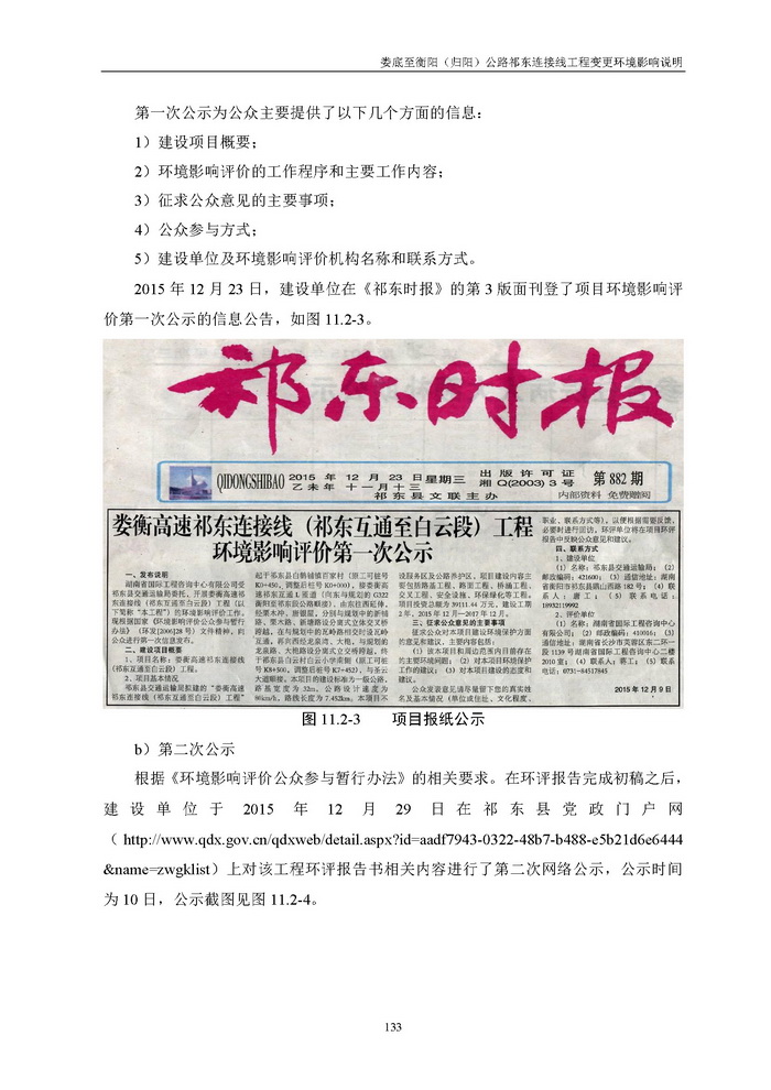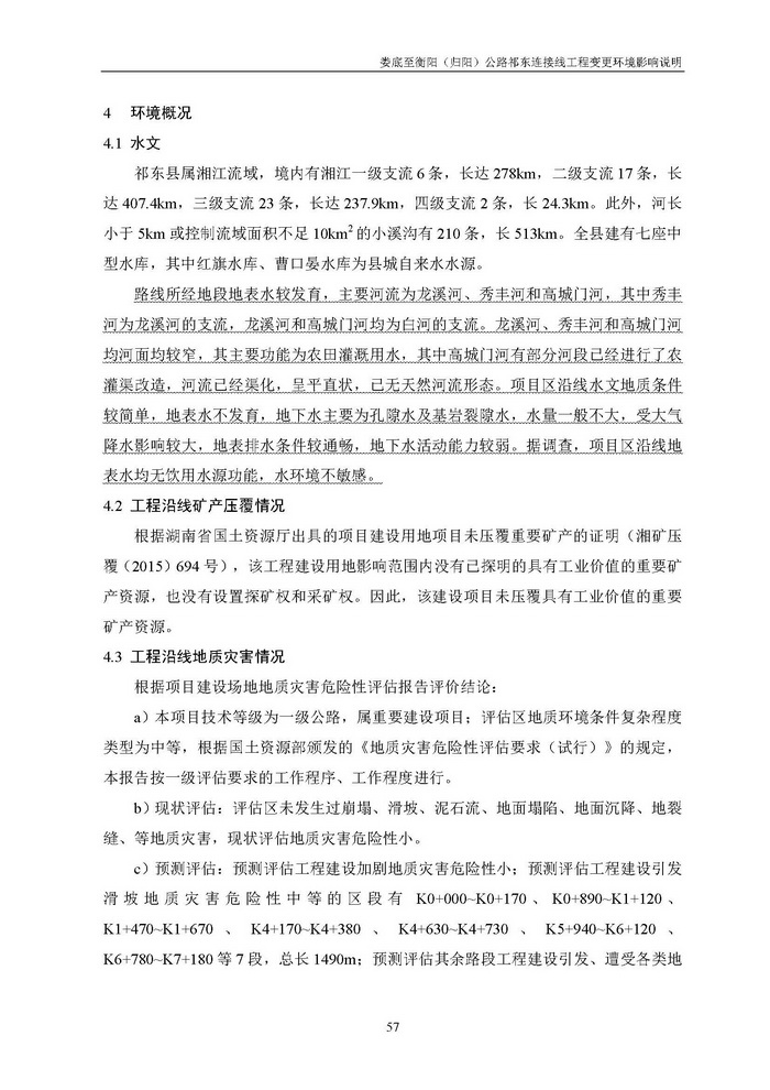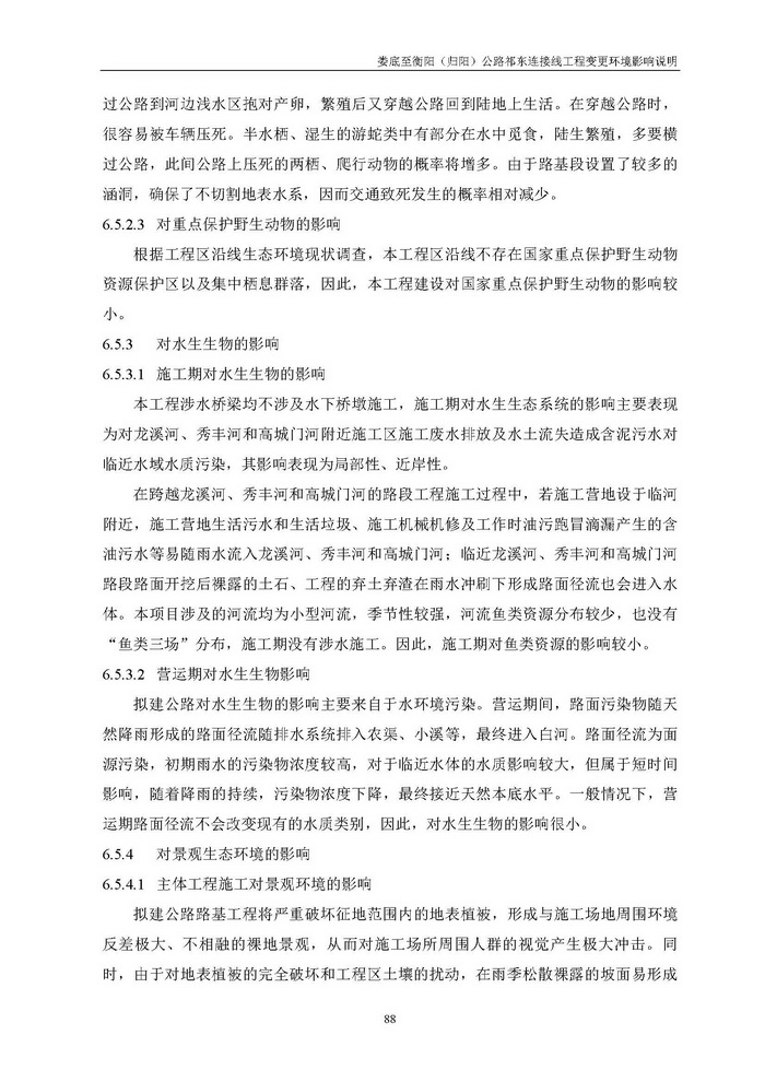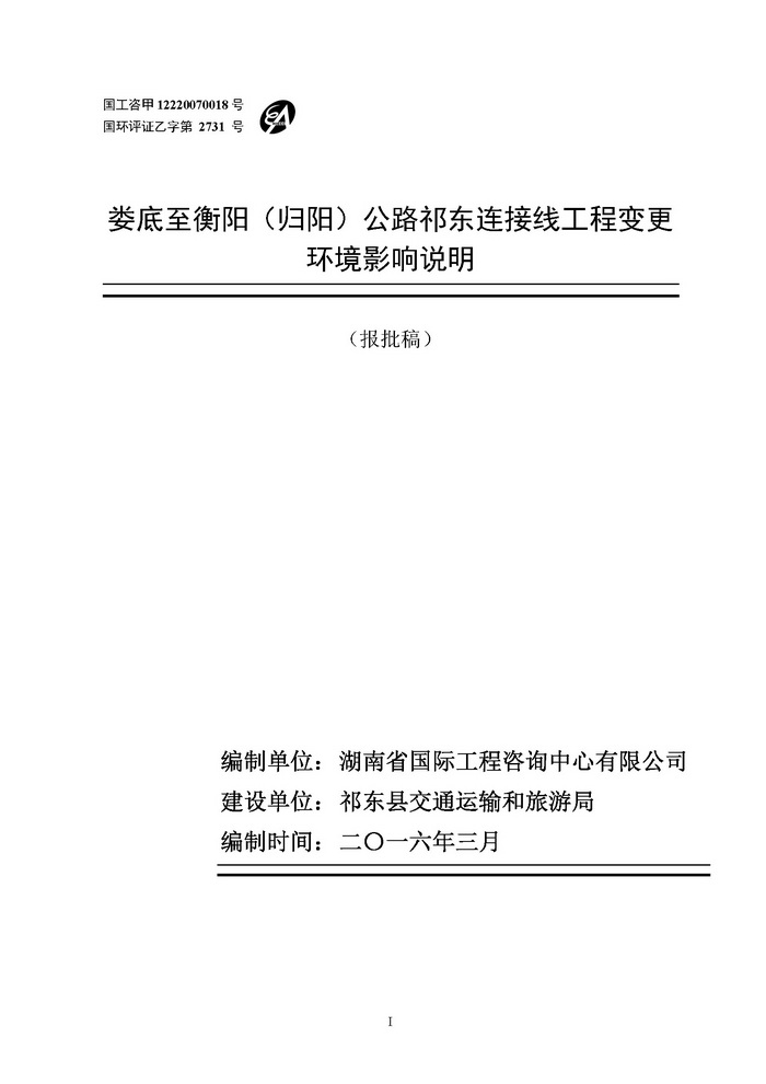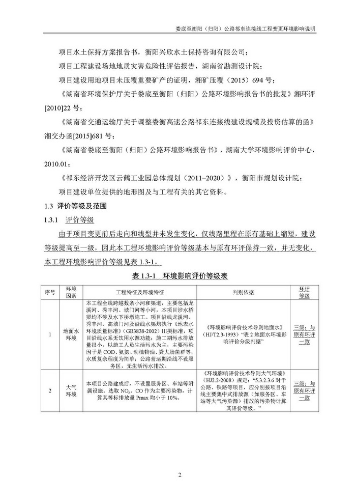 婁底至衡陽(歸陽)公路祁東連接線工程變更環(huán)境影響說明(報批)