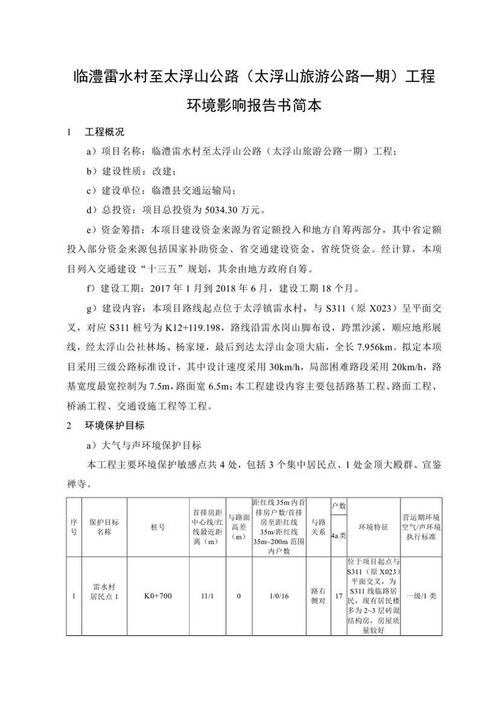 臨澧雷水村至太浮山公路(太浮山旅游公路一期)工程環(huán)境影響報(bào)告書簡(jiǎn)本