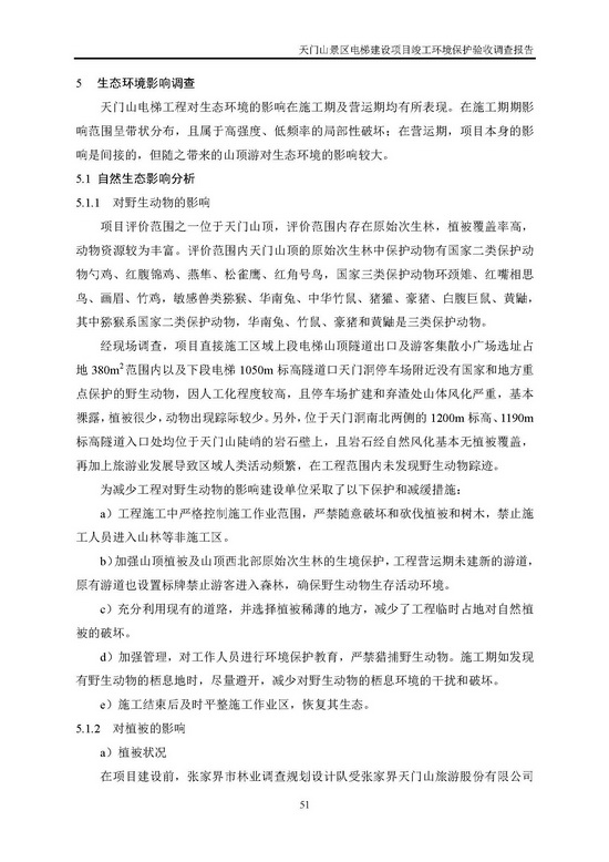 天門山景區(qū)電梯工程變更項目環(huán)境保護驗收調(diào)查報告(全本公示稿)
