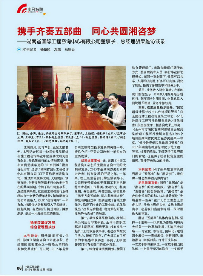 【轉(zhuǎn)載中國(guó)工程咨詢雜志】攜手齊奏五部曲 同心共圓湘咨夢(mèng)