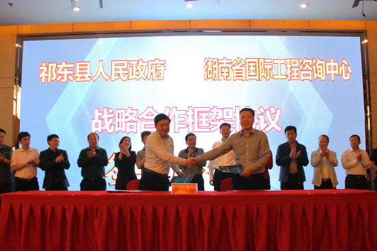最后,公司黨委副書記、總經(jīng)理詹瓊雷,祁東縣委常委、常務(wù)副縣長(zhǎng)雷建軍,分別代表湖南省國(guó)際工程咨詢中心有限公司和祁東縣人民政府在戰(zhàn)略合作框架協(xié)議書上簽字。