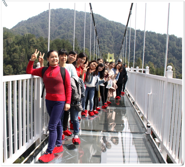 面對(duì)要穿過(guò)的玻璃橋,大家興致勃勃,躍躍欲試
