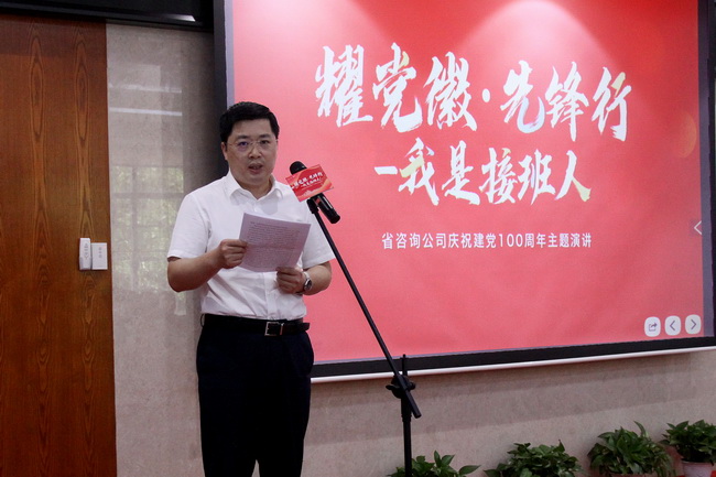 為進一步推動黨史學(xué)習(xí)教育走深走實,引導(dǎo)廣大干部職工學(xué)史明理、學(xué)史增信、學(xué)史崇德、學(xué)史力行,6月4日上午,省咨詢公司舉辦“耀黨徽 先鋒行——我是接班人”慶祝中國共產(chǎn)黨成立100周年主題演講比賽,重溫黨的光輝歷程,歌頌黨的偉大成就。此次活動是省咨詢公司黨委開展黨史學(xué)習(xí)教育部署的專項活動之一,由公司團委組織實施,公司領(lǐng)導(dǎo)班子及四位員工代表擔(dān)任評委,公司全體職工干部參加活動。
