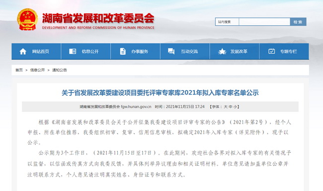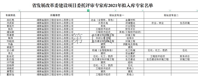近日,根據(jù)《湖南省發(fā)展和改革委員會關(guān)于公開征集我委建設(shè)項目評審專家的公告》(2021年第2號),經(jīng)省發(fā)展改革委審核研究決定,省發(fā)展改革委建設(shè)項目委托評審專家?guī)?021年擬入庫專家名單正式發(fā)布,我司謝盛文等19名專家成功入選。