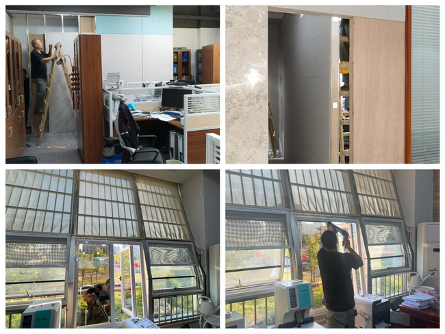 圖1 自查自糾整改現(xiàn)場:將配電間與辦公室隔開并設置單獨防火通道、在辦公區(qū)域增設安全逃生窗口