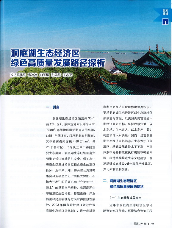 近日,由省咨詢公司生態(tài)規(guī)劃咨詢部撰寫(xiě)的《洞庭湖生態(tài)經(jīng)濟(jì)區(qū)綠色高質(zhì)量發(fā)展路徑探析》一文被《中國(guó)工程咨詢》(中國(guó)工程咨詢協(xié)會(huì)主辦)2023年第3期刊用。