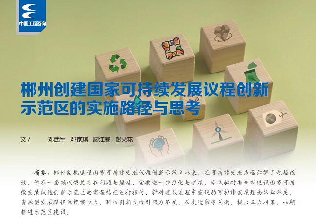 近日,由湘咨集團(tuán)生態(tài)規(guī)劃咨詢事業(yè)部撰寫的《郴州創(chuàng)建國(guó)家可持續(xù)發(fā)展議程創(chuàng)新示范區(qū)的實(shí)施路徑與思考》一文刊發(fā)于《中國(guó)工程咨詢》2023年第8期,作者為該部門鄧武軍、鄧家琪、廖江威、彭朵花?!吨袊?guó)工程咨詢》雜志創(chuàng)刊20年,是工程咨詢行業(yè)唯一全國(guó)發(fā)行的期刊。期刊主要宣傳黨和國(guó)家有關(guān)投資建設(shè)的方針、政策和法規(guī),介紹中國(guó)工程咨詢行業(yè)工作動(dòng)態(tài)和發(fā)展面貌,溝通國(guó)內(nèi)外工程咨詢行業(yè)信息,報(bào)道工程咨詢業(yè)焦點(diǎn)人物、重要事件及典型案例,探討工程咨詢理論建設(shè),傳播工程咨詢業(yè)務(wù)知識(shí)等。