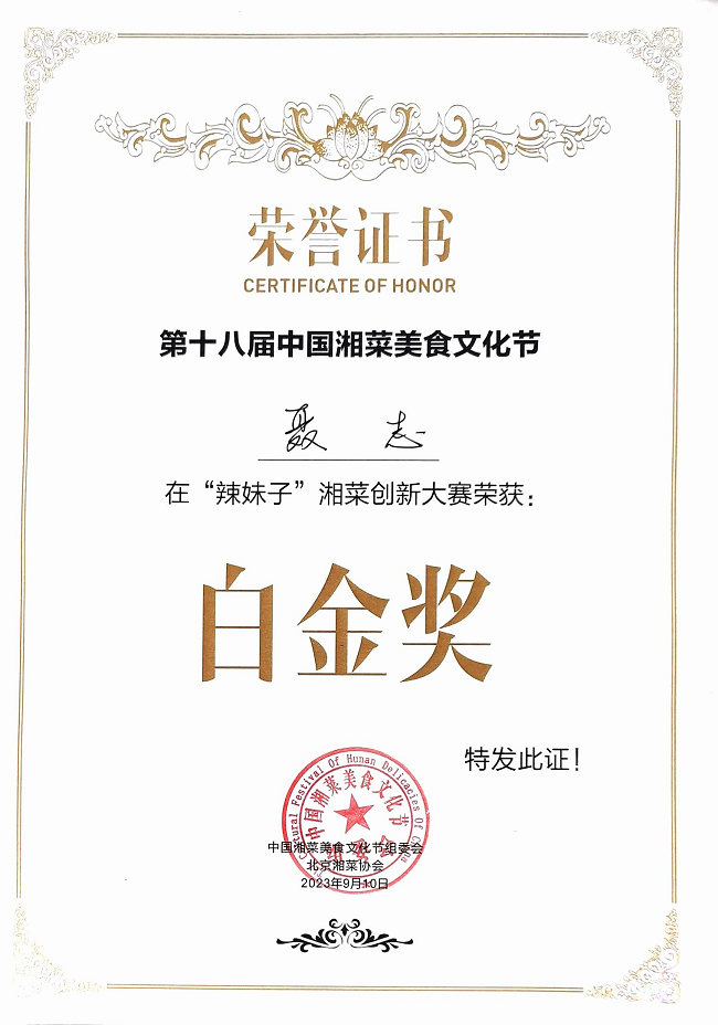 湘菜出湘,京城飄香。9月10日,由湖南省人民政府駐北京辦事處、湖南日報社、湖南省商務(wù)廳和長沙市人民政府聯(lián)合主辦的第十八屆中國湘菜美食文化節(jié)在北京盛大舉行。此次中國湘菜美食文化節(jié)共有60余位選手參賽,湘咨集團(tuán)下屬北京澤相苑大酒店以主打菜品“攜手共進(jìn)”參賽,榮獲此次大賽的最高獎項--白金獎。