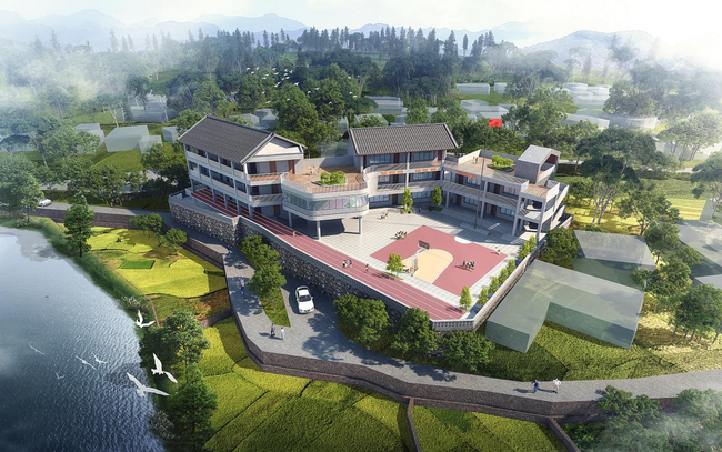 磨老小學地處湘黔邊區(qū),位置特殊,責任重大。項目自開工以來,面對基礎(chǔ)條件差,規(guī)劃標準高,時間緊等諸多挑戰(zhàn),民建及市政院設(shè)計團隊迎難而上,主動作為,高標準、嚴要求,優(yōu)化資源配置,倒排工期、責任到人,在2個月內(nèi)優(yōu)質(zhì)高效地完成了項目的初步設(shè)計和施工圖設(shè)計,為邊區(qū)人民眾遞交了一份滿意的答卷。最終建成的磨老小學規(guī)劃用地面積2191平方米,建筑占地680 平方米,總建筑面積達1847 平方米,設(shè)計容納學生共175人,此外新建了學生運動場、食堂和學生就餐間,可完全滿足師生教育教學和生活的需要。
