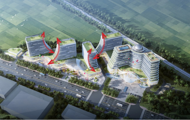 通過層層退臺的形式引入垂直綠化,以環(huán)保可持續(xù)為核心,將綠色引入城市建筑,改善空氣質(zhì)量,調(diào)節(jié)溫度,美化環(huán)境。利用多種技術(shù)與材料,如節(jié)水灌溉、環(huán)保材質(zhì),實現(xiàn)外墻、場景綠化。這一設(shè)計,不僅提升建筑美觀與生態(tài)價值,更促進人與自然和諧共生。